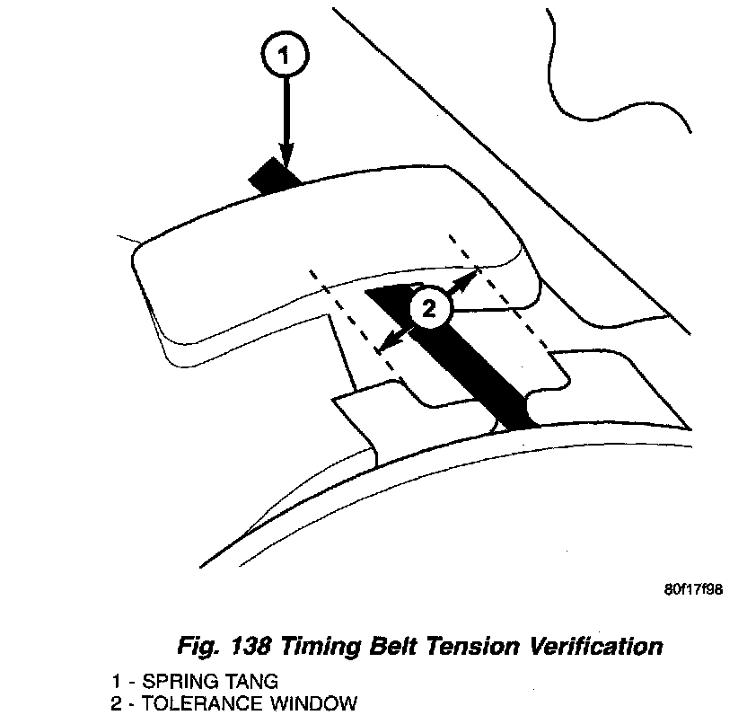 8. Check if the spring tang is within the tolerance window (Fig. 138). If the spring tang is within the tolerance window, the installation process is complete and nothing further is required. If the spring tang is not within the tolerance window, repeat Steps 5 through 7.