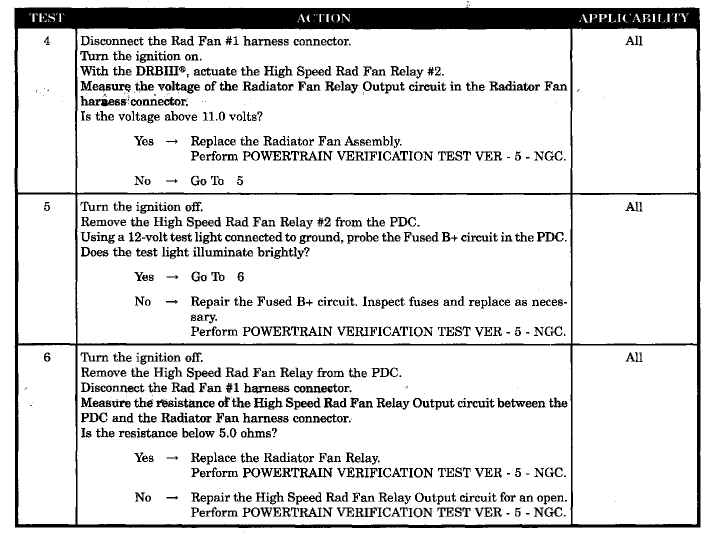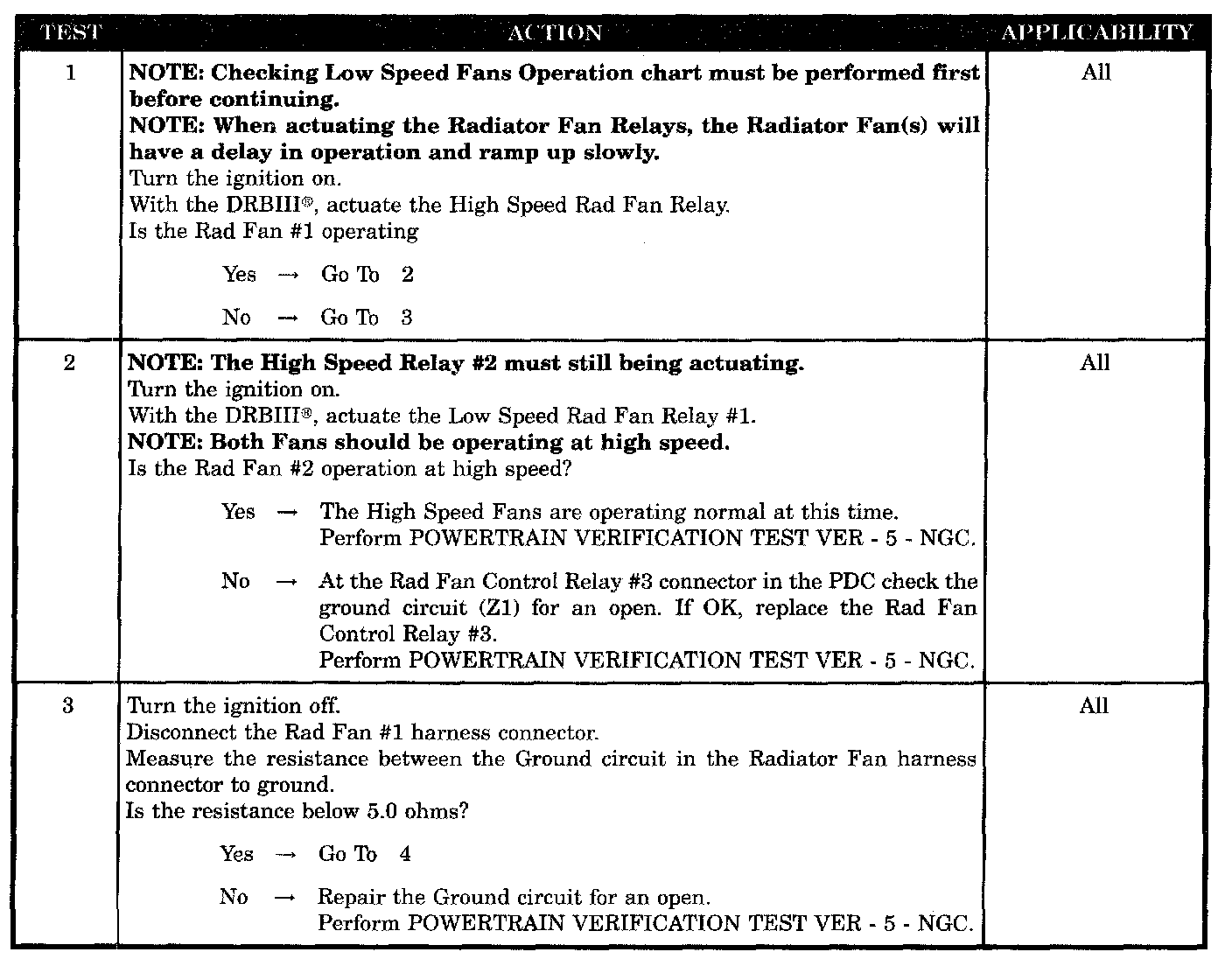 CHECKING RAD FAN HIGH SPEED OPERATION (TURBO)