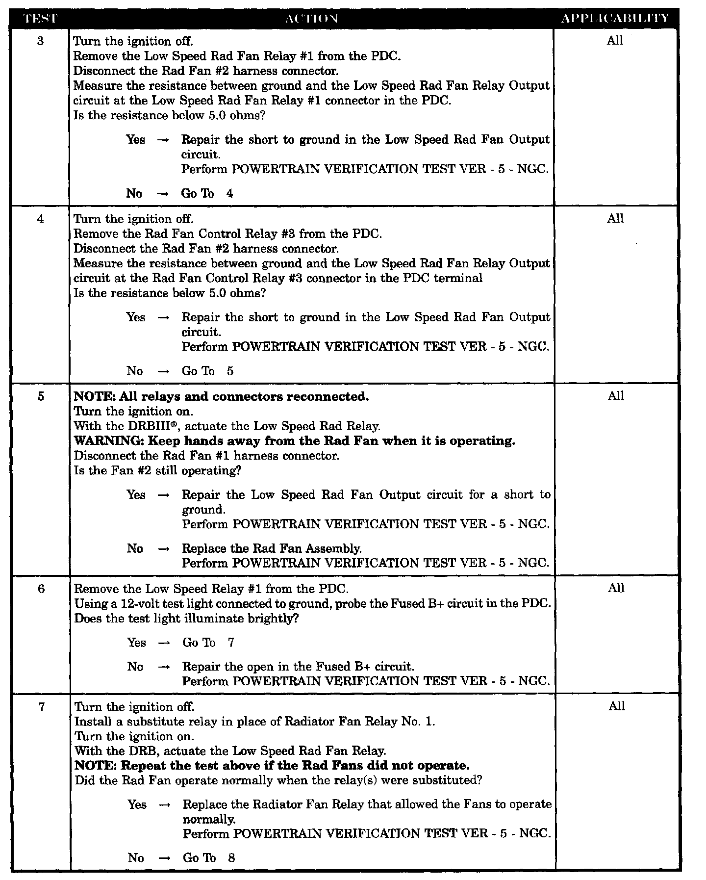 - Low Speed Rad Output Circuit Shorted To Ground Between Relay # 3 And Fan# 1
