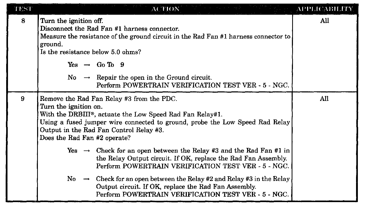 - Low Speed Rad Fan Output Shorted To Ground Between Relay # 2 And Fan # 2