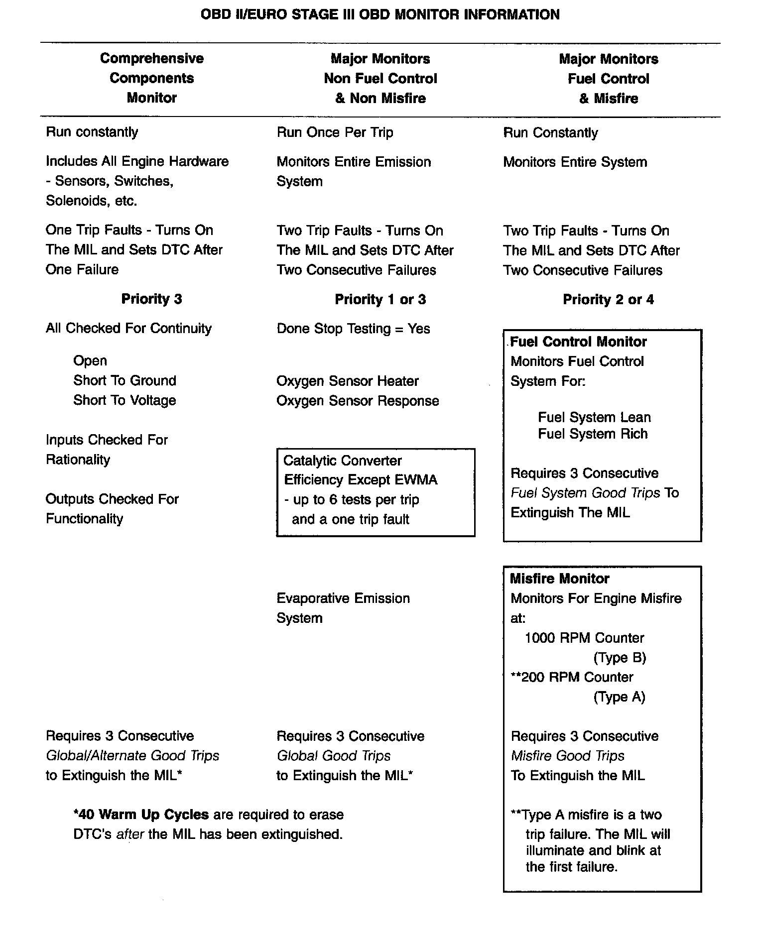 OBD II/Euro Stage III OBD Monitor Information:
