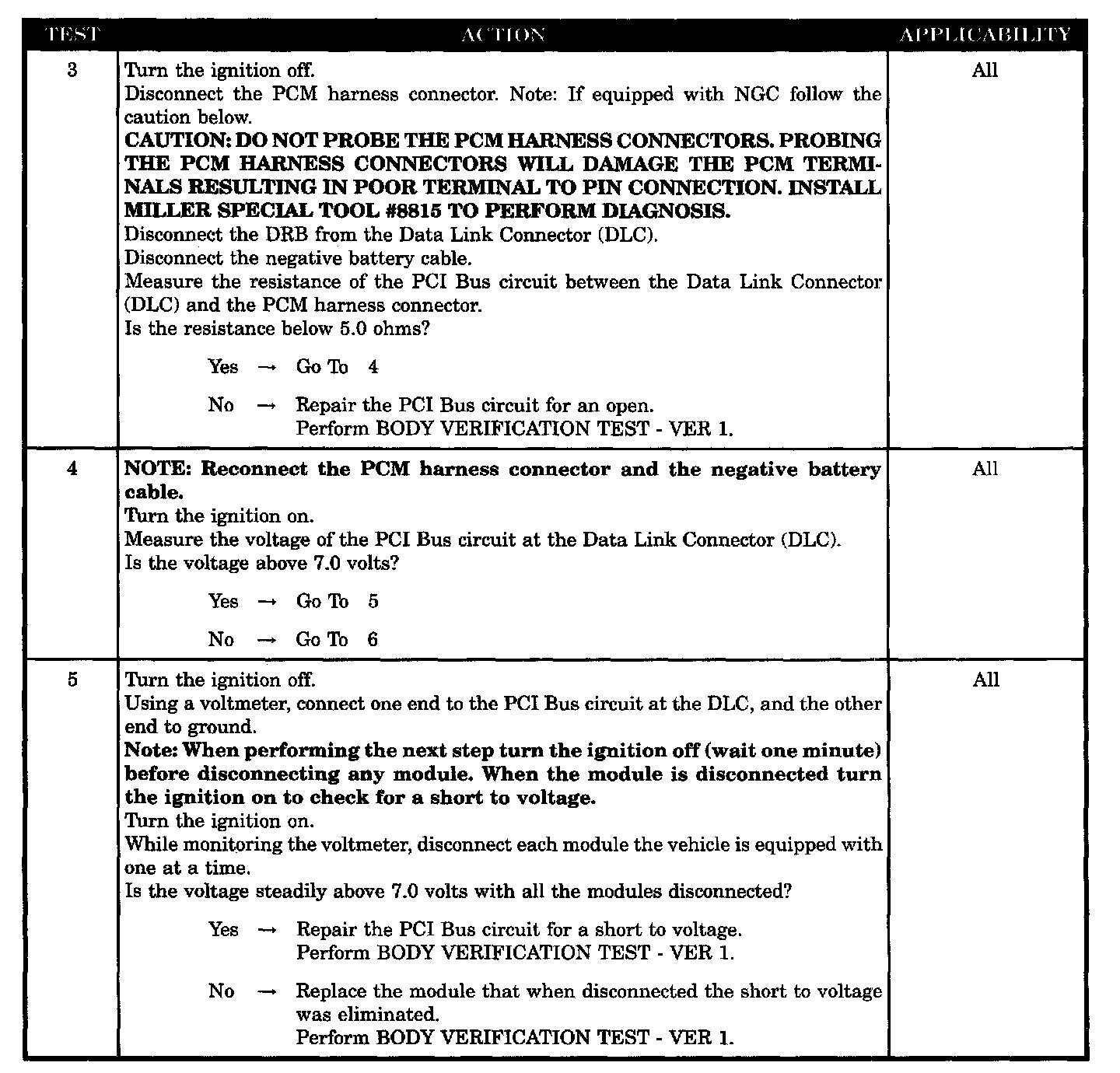 - Open PCI Bus Circuit At The Data Link Connector (DLC)