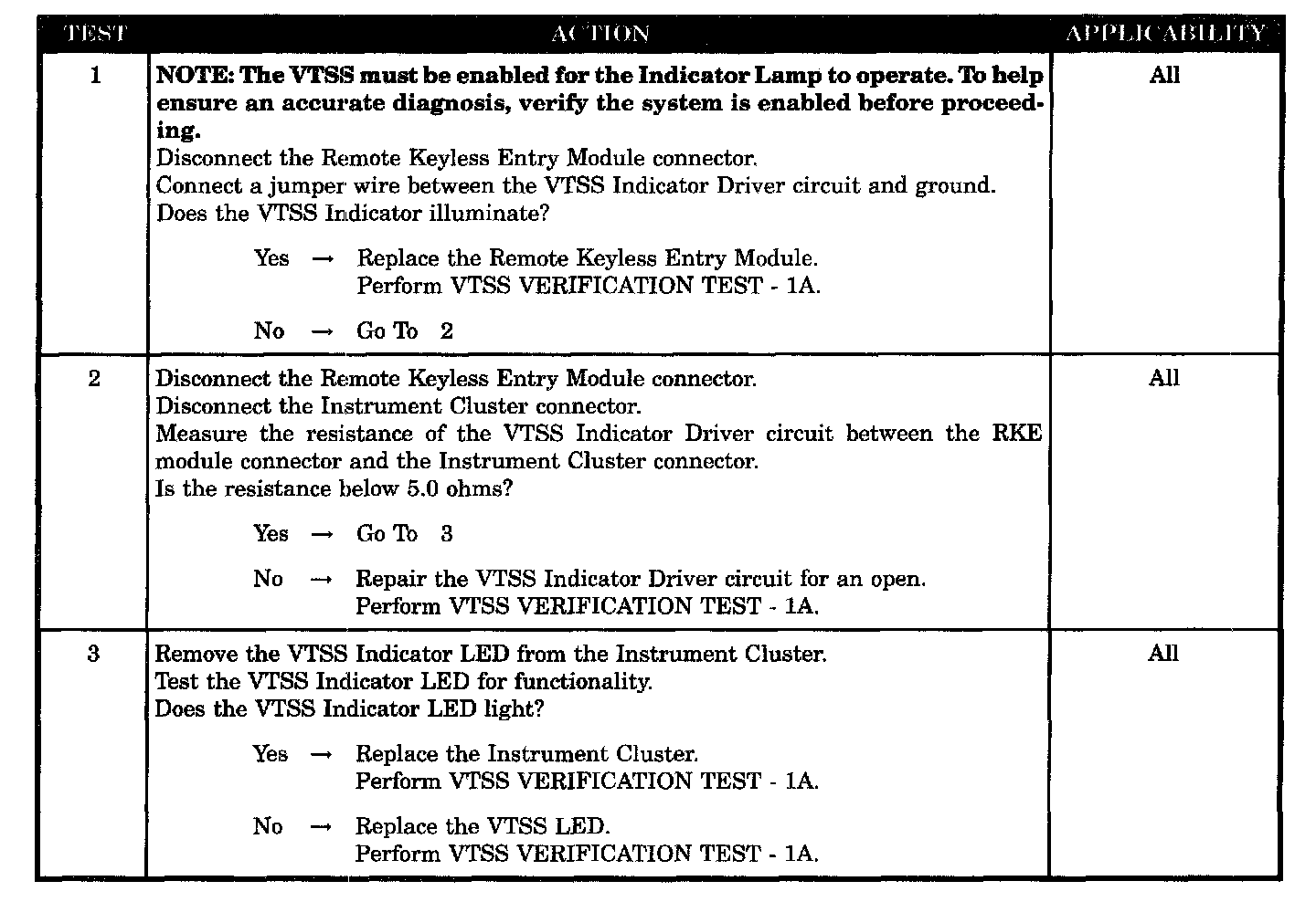 VTSS INDICATOR FAILS TO FLASH