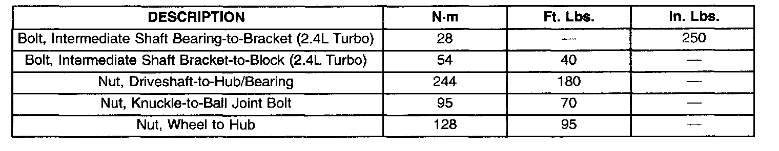 TORQUE SPECIFICATIONS