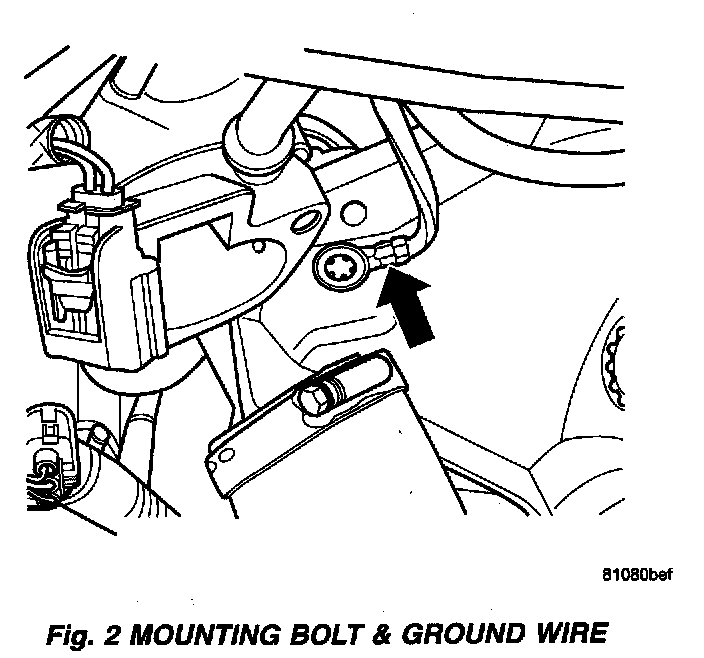 4. Remove the upper mounting bolt and ground wire.