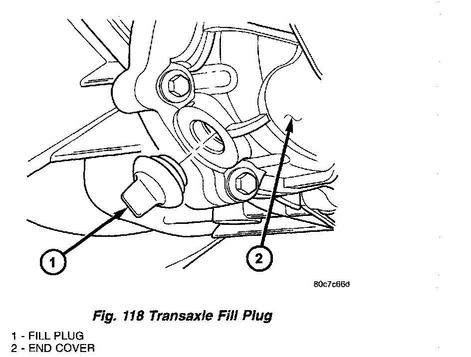 3. Inspect fluid level. Fluid should be within 3/16" below fill hole. Add Mopars ATF+4 as necessary.