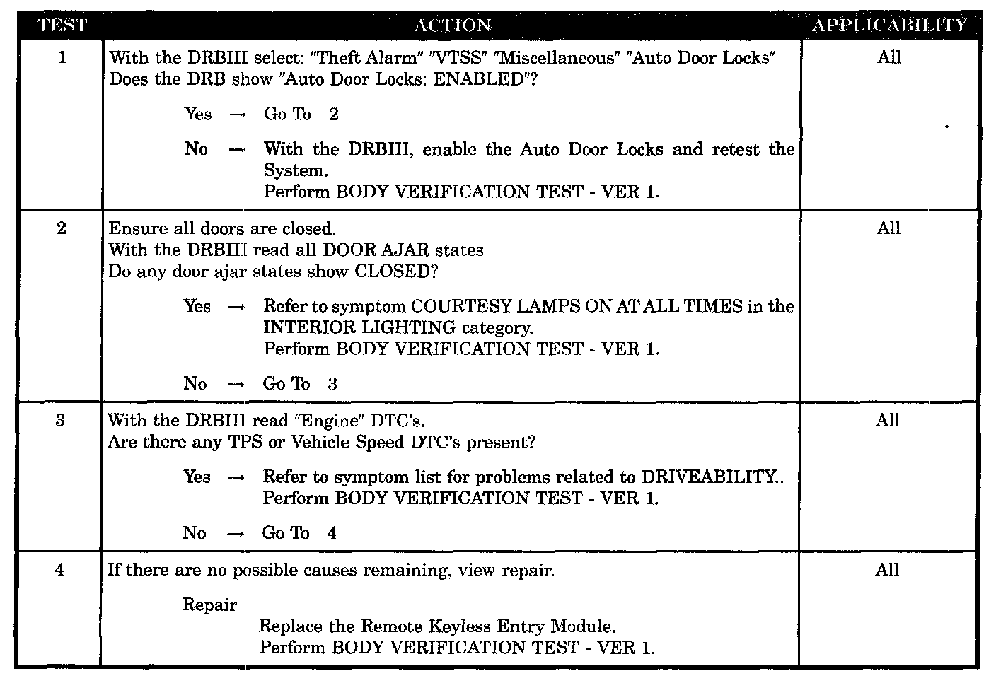 AUTOMATIC DOOR LOCKS INOPERATIVE