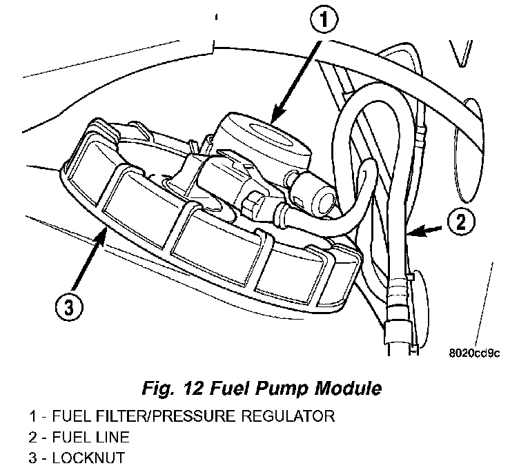 WARNING: THE FUEL RESERVOIR OF THE FUEL PUMP MODULE DOES NOT EMPTY OUT WHEN THE TANK IS DRAINED. THE FUEL IN THE RESERVOIR WILL SPILL OUT WHEN THE MODULE IS REMOVED.