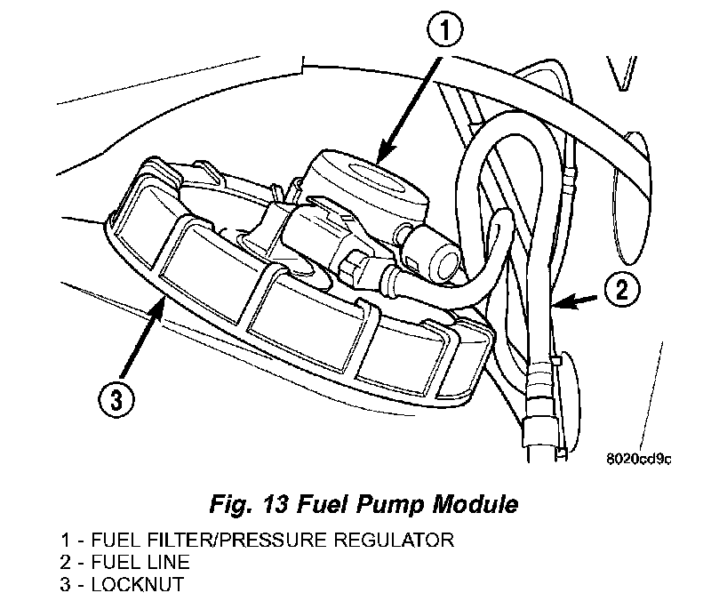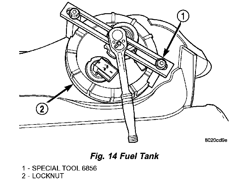 4. Use Special Tool 6856 to remove fuel pump module locknut (Fig. 13).
