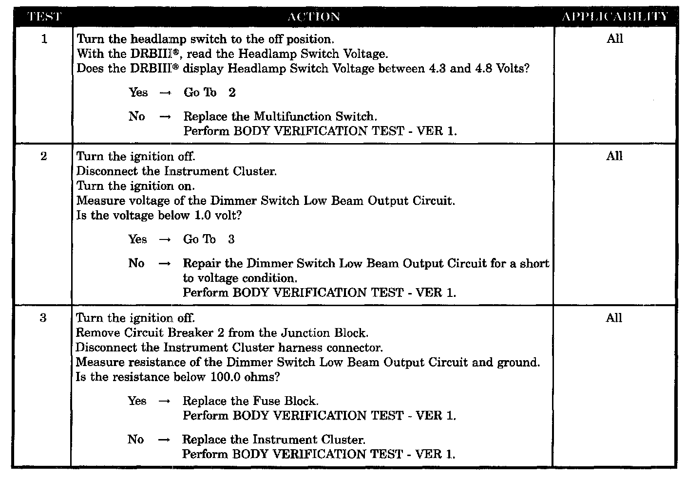 Dimmer switch low beam output circuit short to voltage