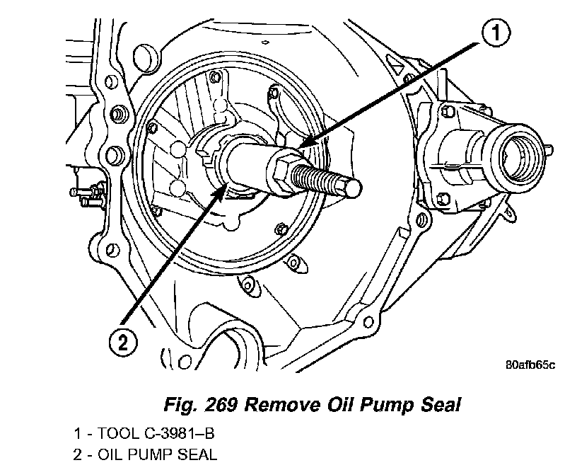 2. Using Tool C-3981-B, remove oil pump seal (Fig. 269).