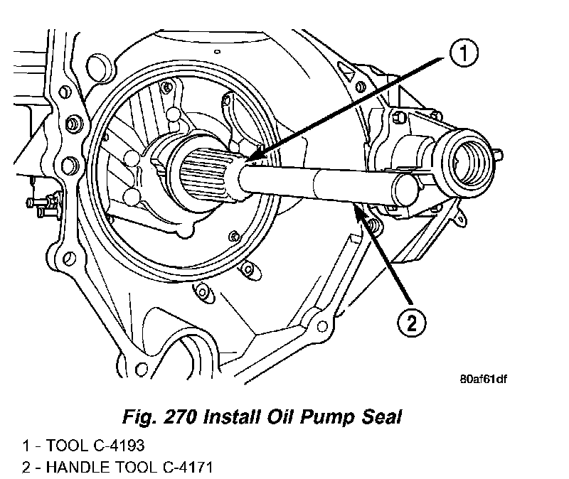 1. Using Tool C-4193, install oil pump seal (Fig. 270).