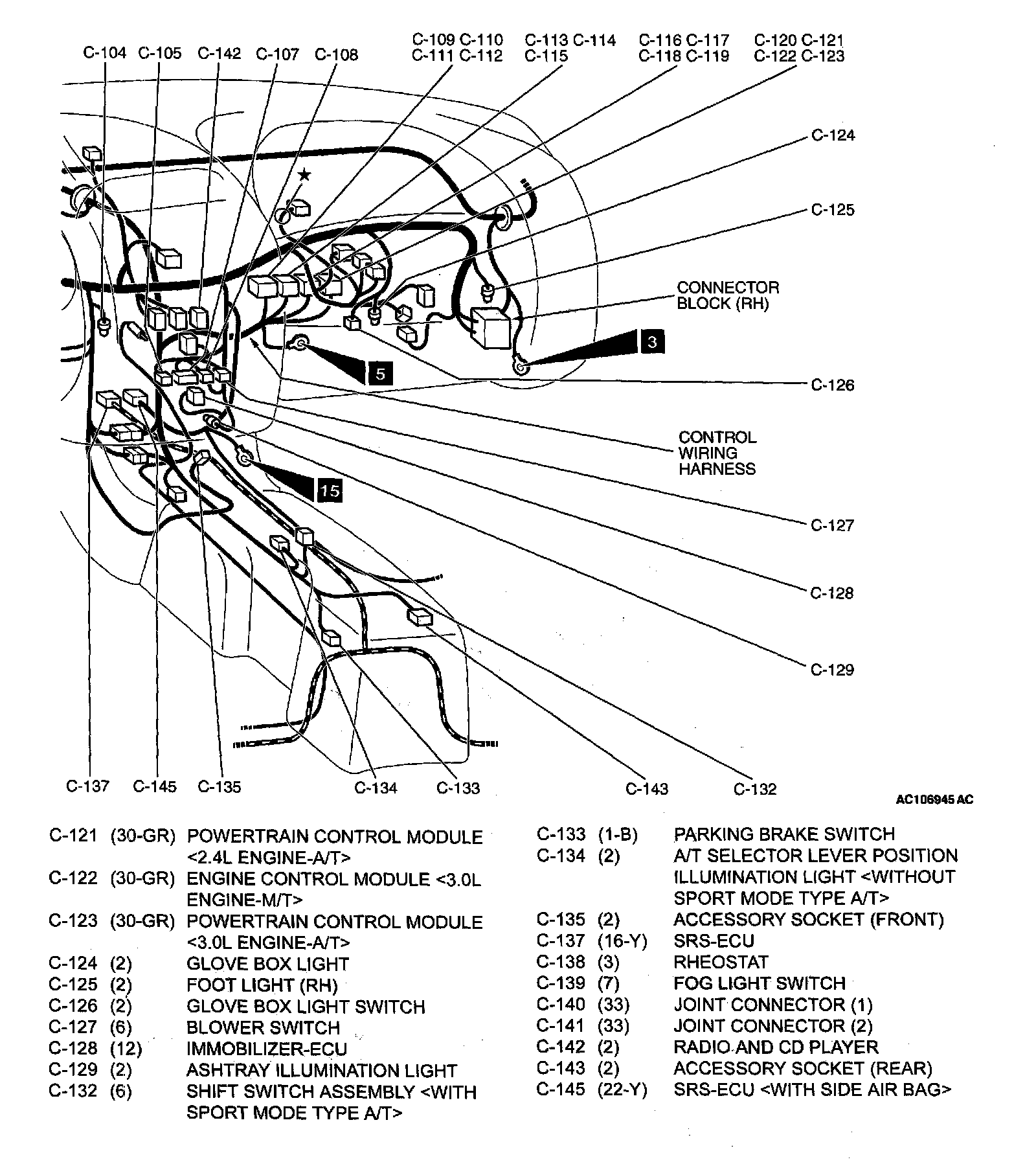 Dash Panel - C Connector [ 121(30-GR) Thru 145(22-Y) ]:
