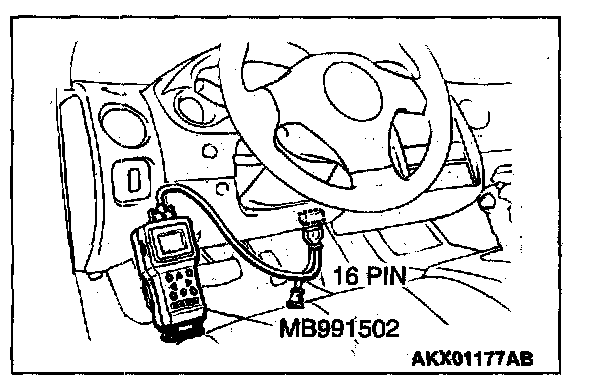 1. Connect scan tool MB991502 to the data link connector.