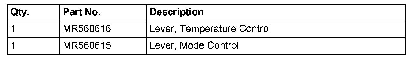The mode (Fig. 1) and temperature (Fig. 2) linkage levers have been made available as service components for the HVAC assembly. If either lever is broken or damaged, the linkage levers can be replaced separately as compared to replacing the HVAC assembly.