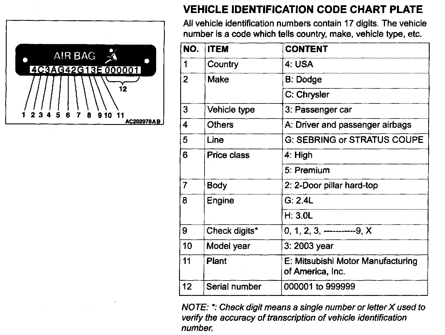 Vehicle Identification Code Chart Plate:
