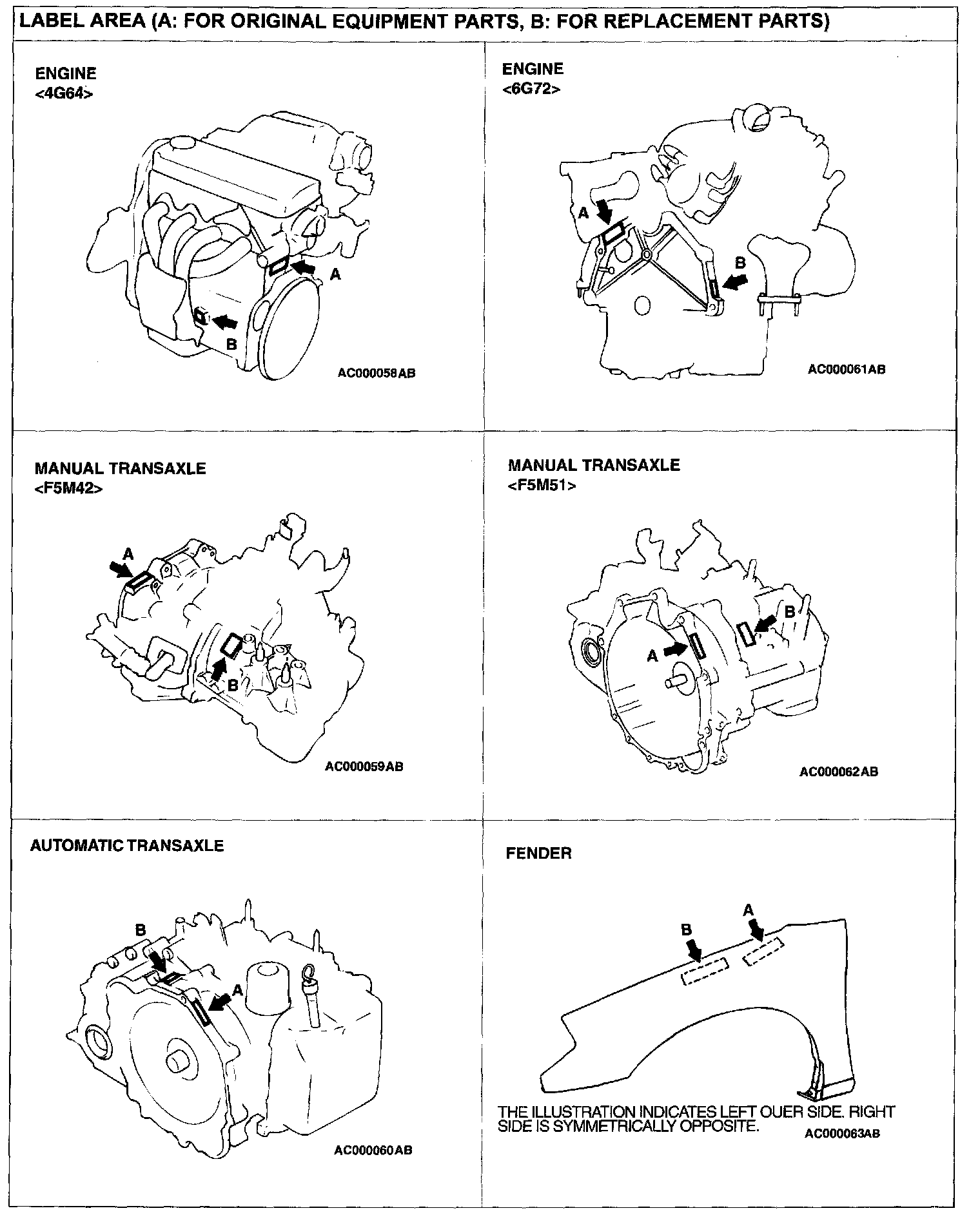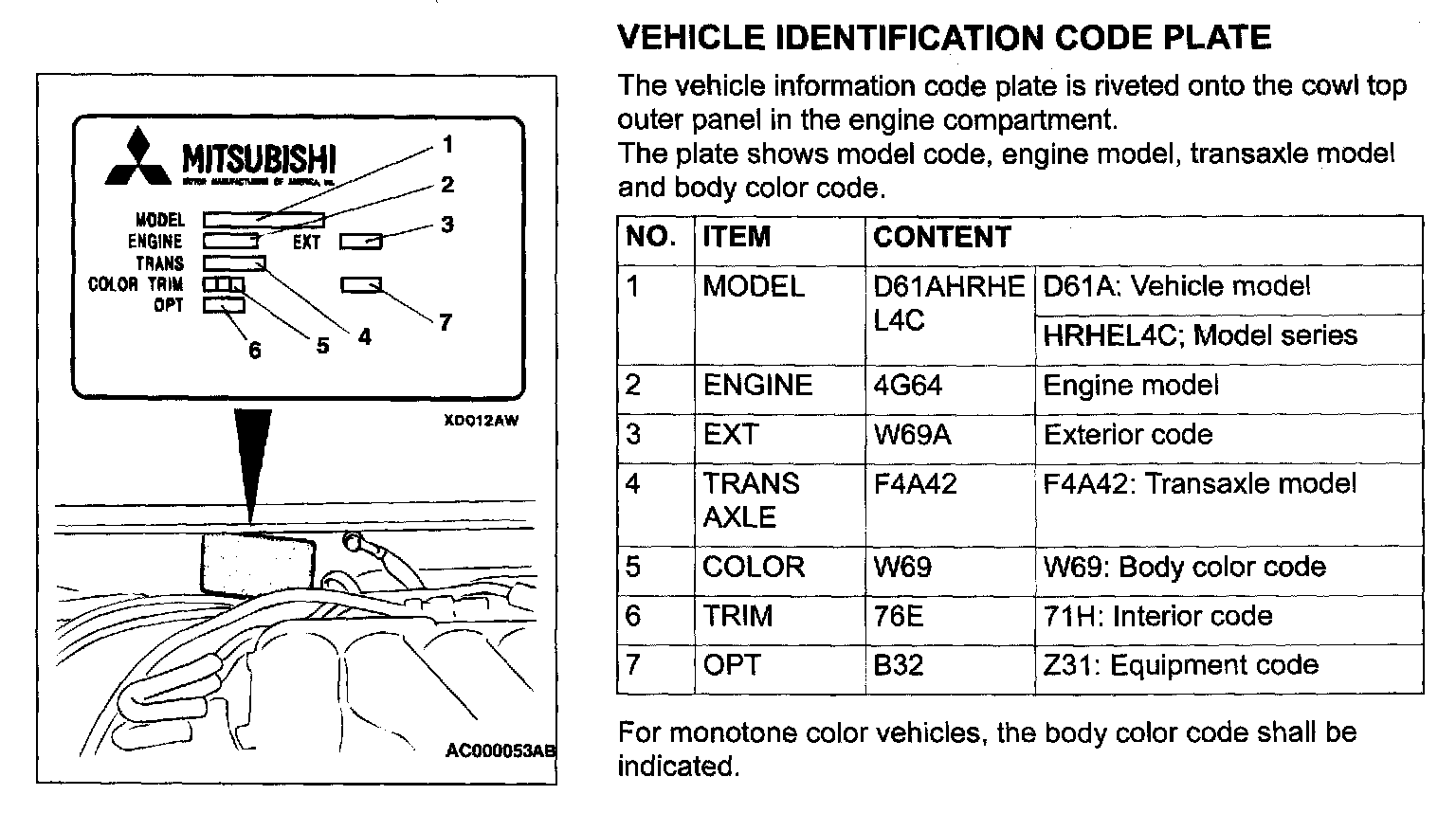 In order to protect against theft, a Vehicle Identification Number (VIN) is attached as a plate or label to the following major parts of the engine and transaxle, as well as main outer panels: