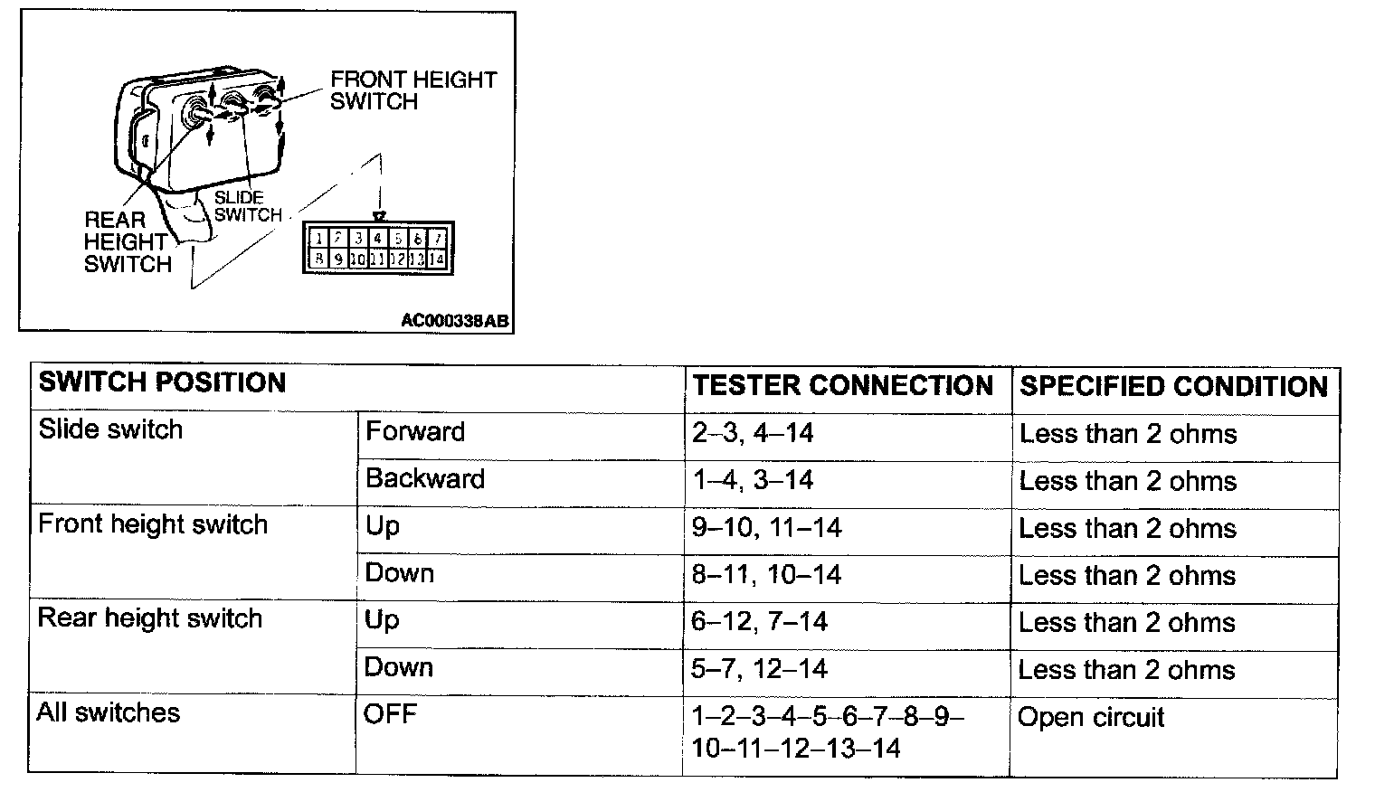Power Seat Switch: Testing and Inspection