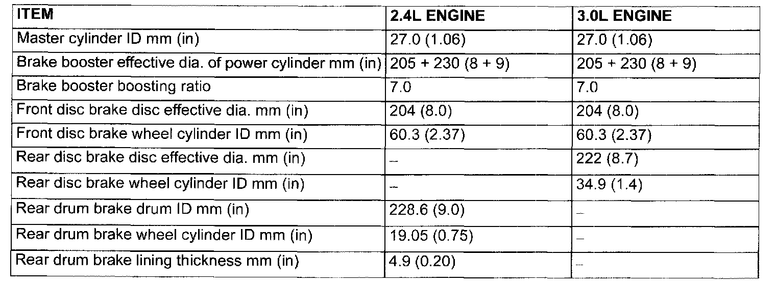 Base Brake General Specifications