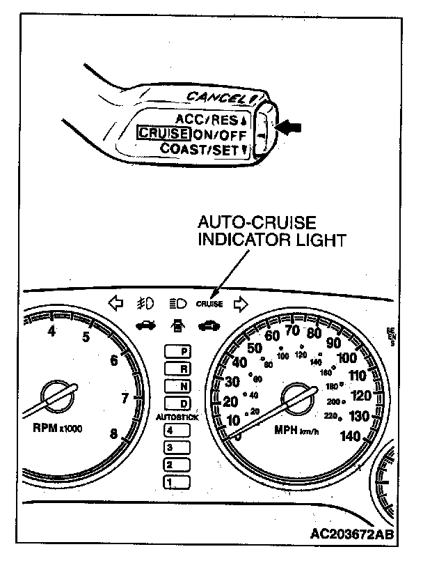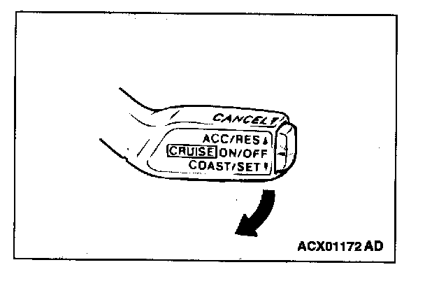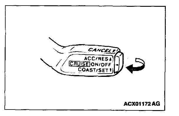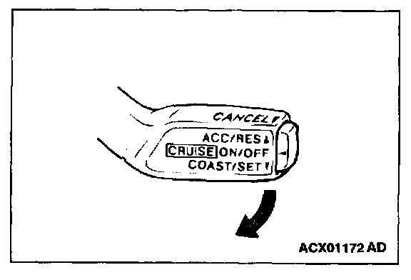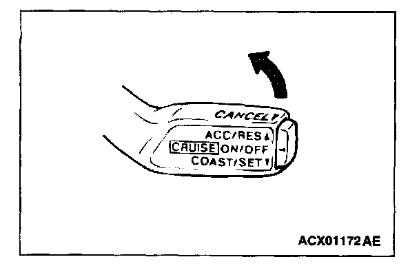 1. The auto-cruise control switch is pushed in the direction of arrow.
