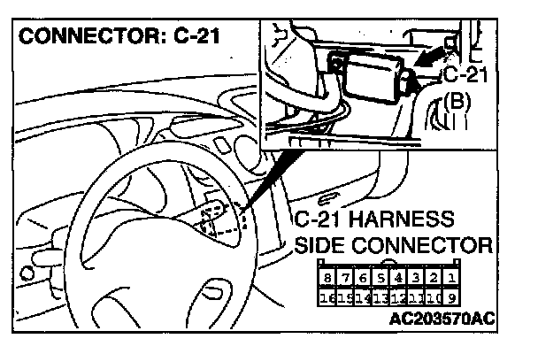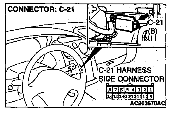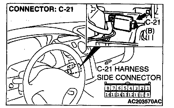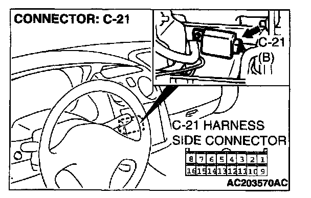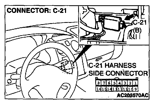 STEP 5. Check auto-cruise control-ECU connector C-21 for loose, corroded or damaged terminals, or terminals pushed back in the connector.
