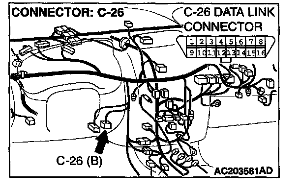 STEP 7. Check auto-cruise control-ECU connector C-21 and data link connector C-26 for loose, corroded or damaged terminals, or terminals pushed back in the connector.