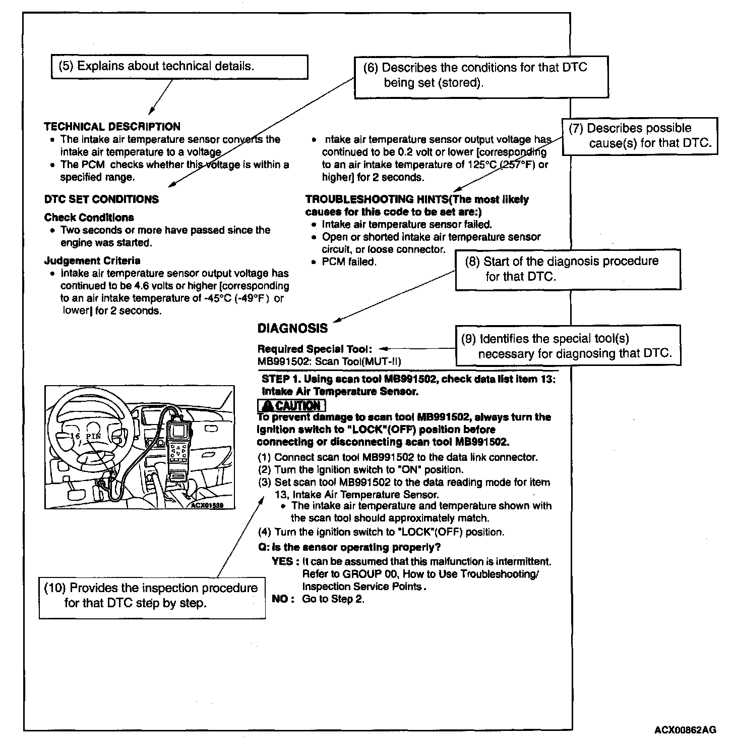 NOTE: In case of difficulty in finding the cause of the intermittent malfunction, the data recorder function in the scan tool is effective.