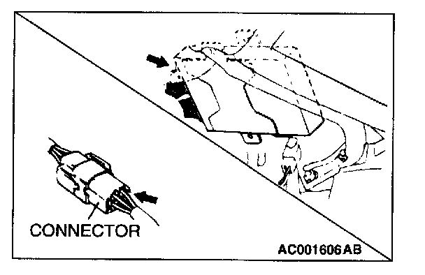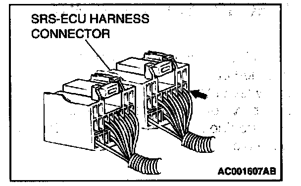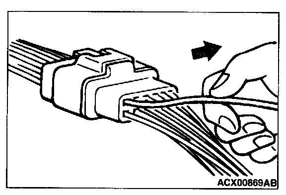 Use special tool MB991219 to inspect the engagement of the male pins and female pins [Pin drawing force: 1 N (0.2 pound) or more]
