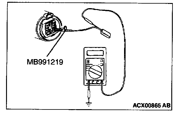 WARNING: Insert the back probing tool into the connector from the harness side, and connect the tester to the back probing tool If any tool other than the back probing tool is used, it may use damage to the harness and other components. Furthermore, measurement should not be carried out by touching the back probing tool directly against the terminals from the front of the connector. The terminals are plated to increase their conductivity, so that if they are touched directly by the back probing tool, the plating may break, which will decrease reliability.