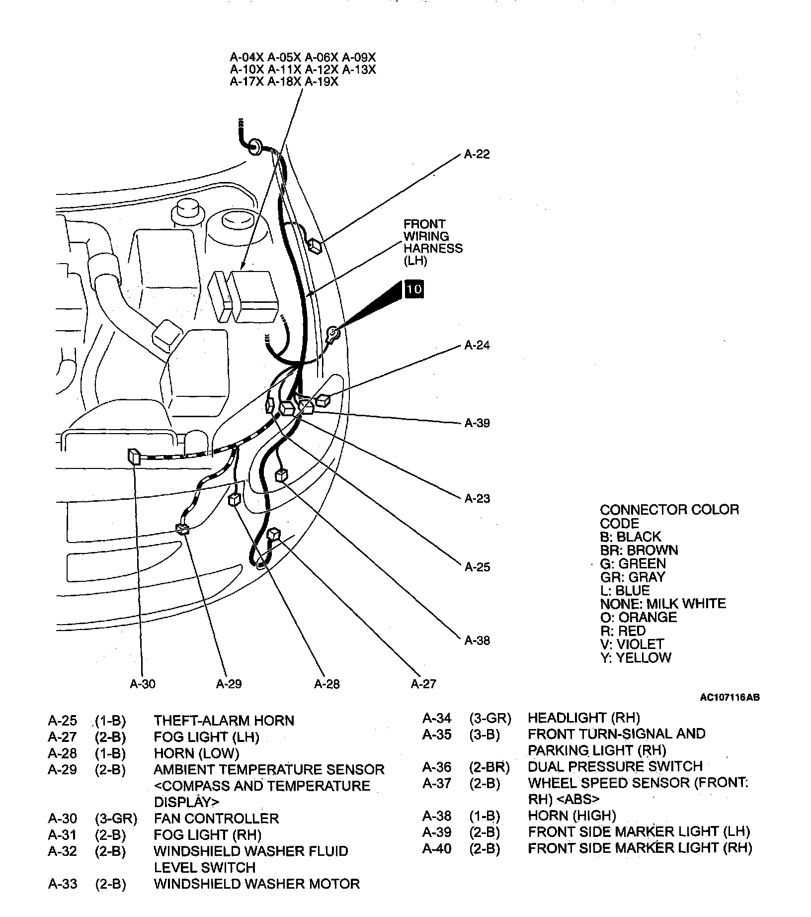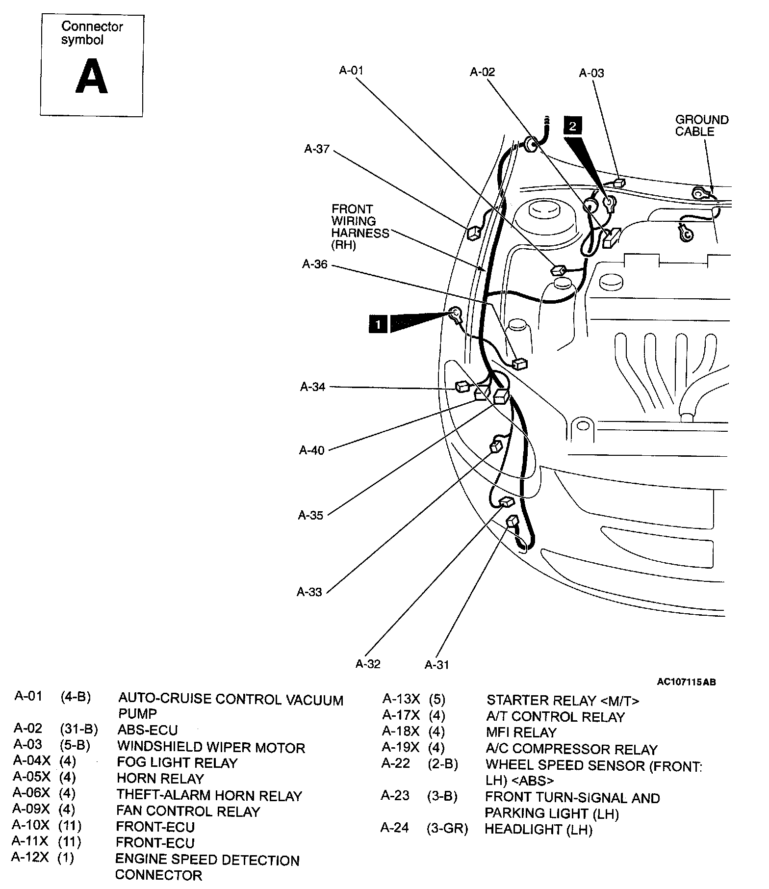 Engine Compartment <Stratus> - A Connector [ 25(1-B) Thru 40(2-B) ]: