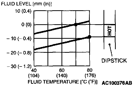 NOTE. If it takes some amount of time until the A/T fluid reaches its normal operating temperature [70 - 80'C (158 176 OF)], check the A/T fluid level by referring to the left diagram.