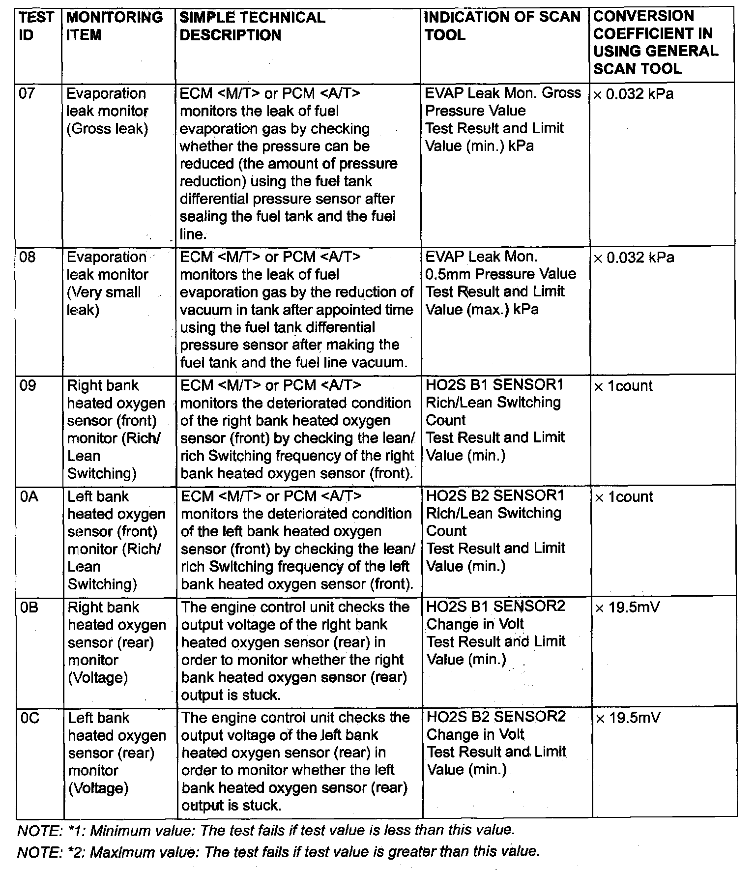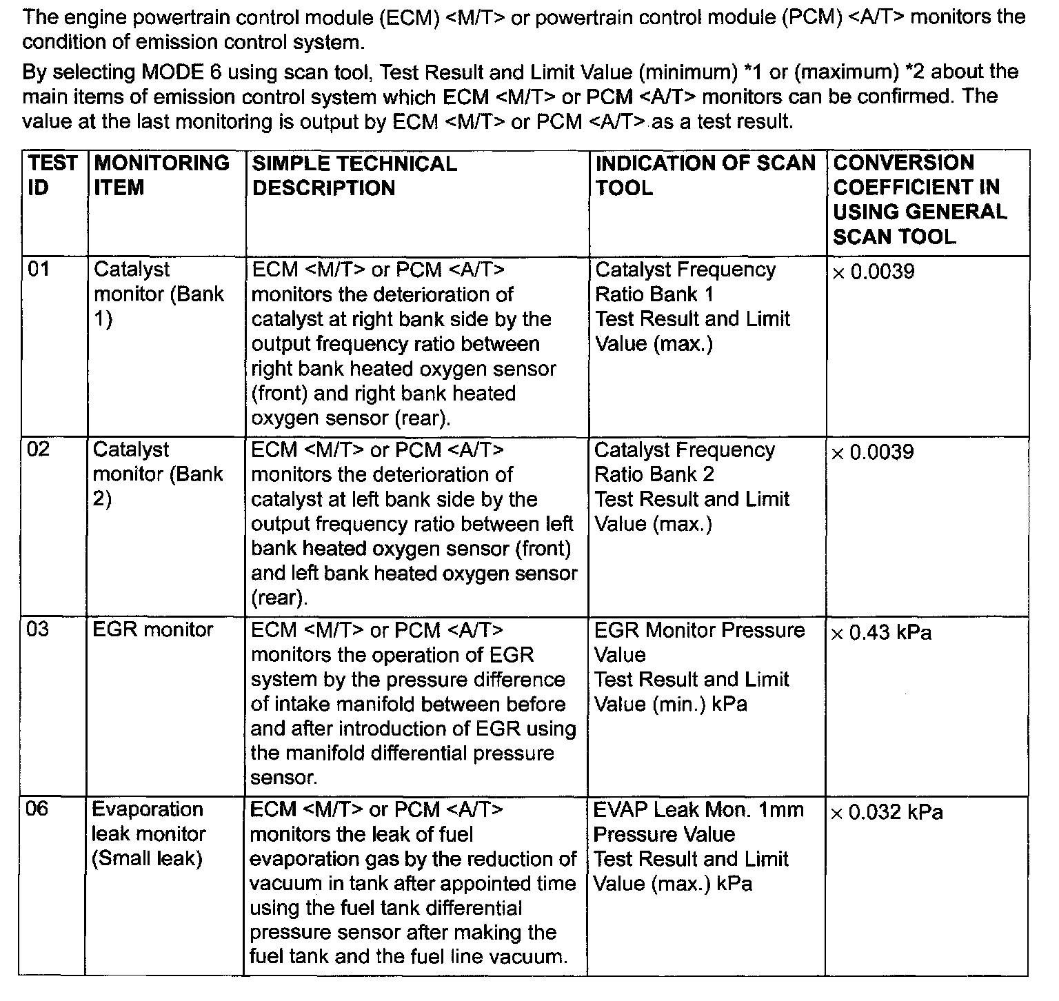 Mode 6 Reference Table (Emission Control System)