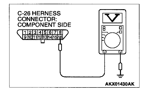 1. Measure voltage between terminal No.16 and ground. Voltage should be battery positive voltage.