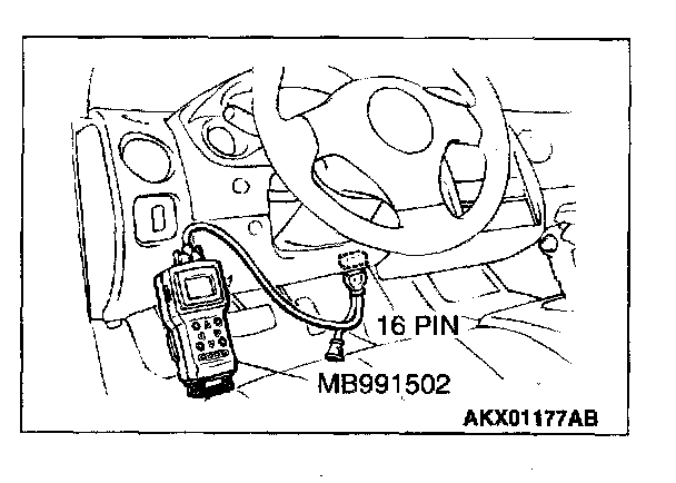 To prevent damage to scan tool MB991502, always turn the ignition switch to the "LOCK" (OFF) position before connecting or disconnecting scan tool MB991502.