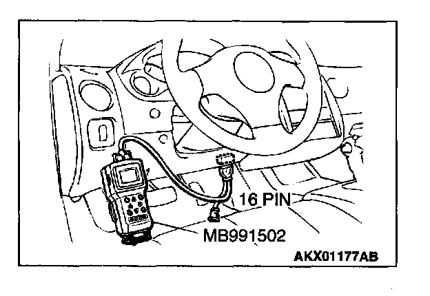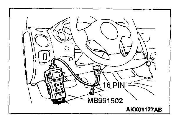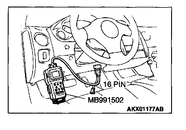 To prevent damage to scan tool MB991502, always turn the ignition switch to the "LOCK" (OFF) position before connecting or disconnecting scan tool MB991502.