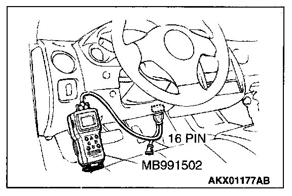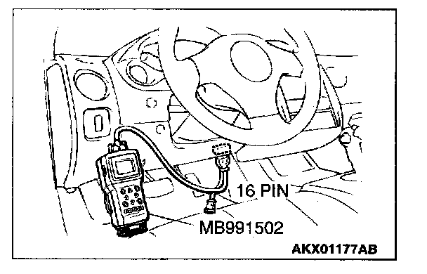 1. Connect scan tool MB991502 to the data link connector.