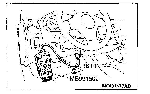 1. Connect scan tool MB991502 to the data link connector.