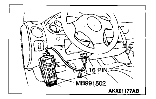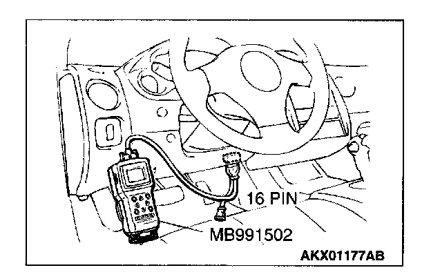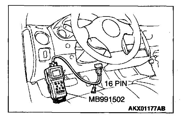 To prevent damage to scan tool MB991502, always turn the ignition switch to the "LOCK" (OFF) position before connecting or disconnecting scan tool MB991502.