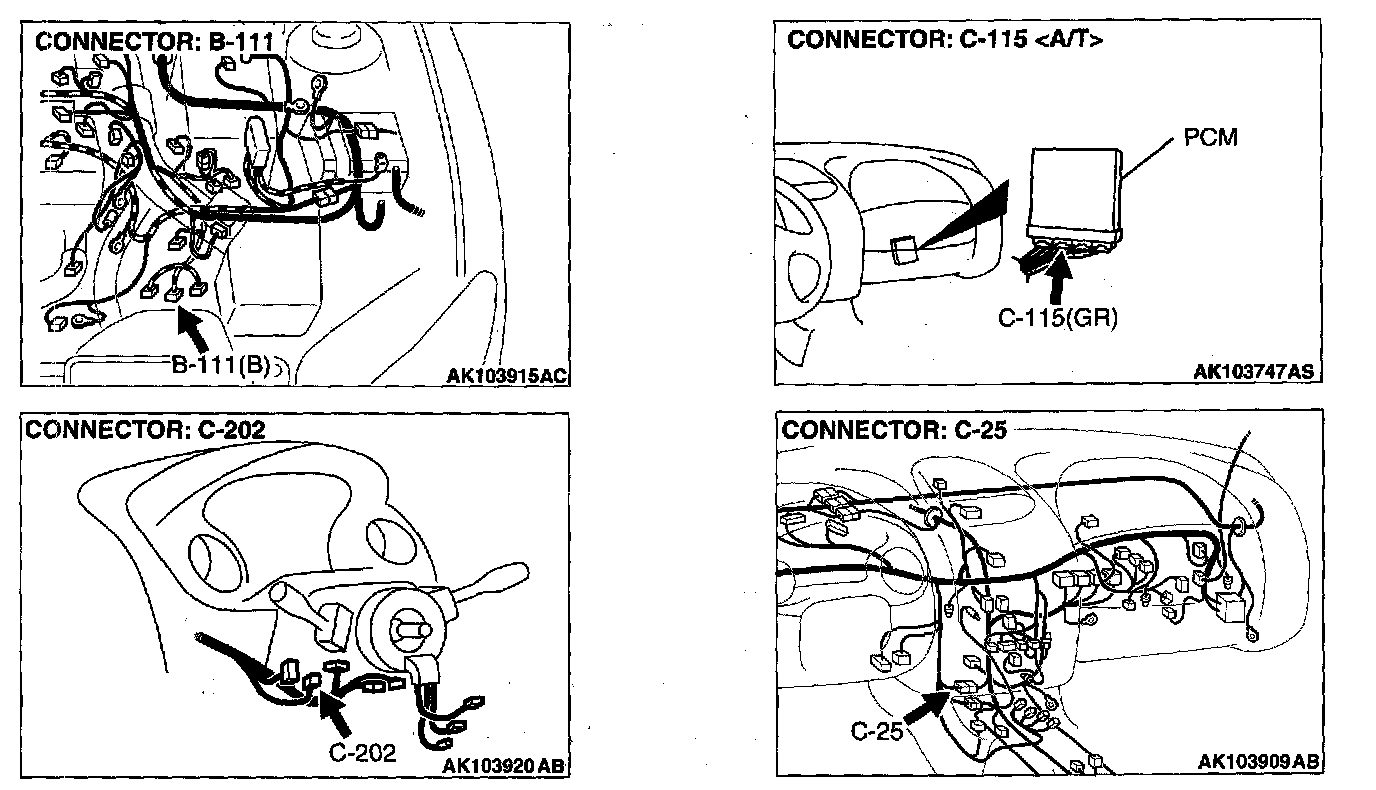 STEP 5. Check for open circuit and short circuit to ground and harness damage between park/neutral position switch connector B-111 (terminal No.9) and PCM connector C-115 (terminal No.58).