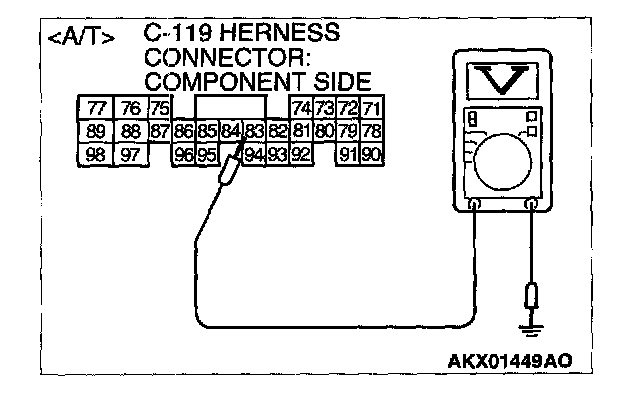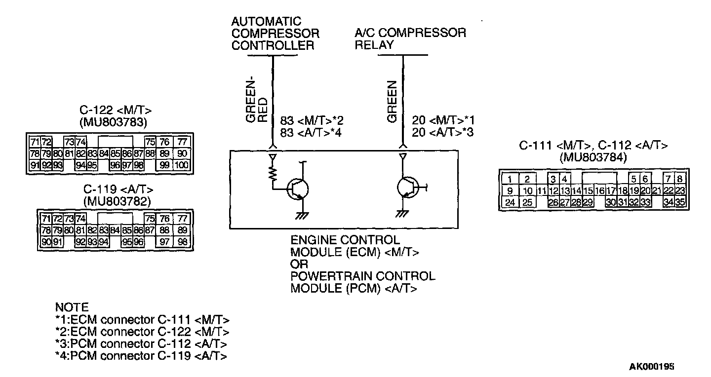 - When the A/C is "ON", the battery positive voltage is applied on the ECM (terminal No.83)