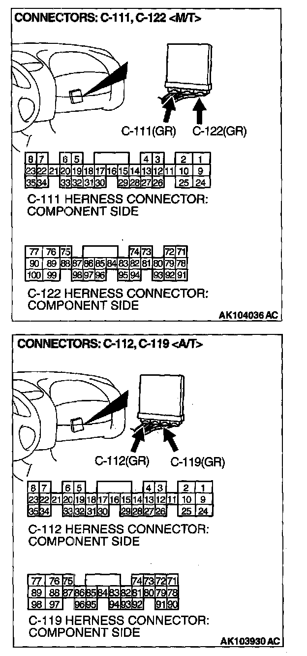 STEP 1. Check connectors C-111, C-122 at ECM