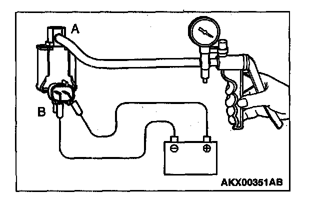 4. As described in the chart below, check airtightness by applying a vacuum with voltage applied directly from the battery to the EGR solenoid and without applying voltage.