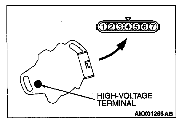 2. Measurement of the secondary coil resistance Measure the resistance between the high-voltage terminal and connector terminal 1.