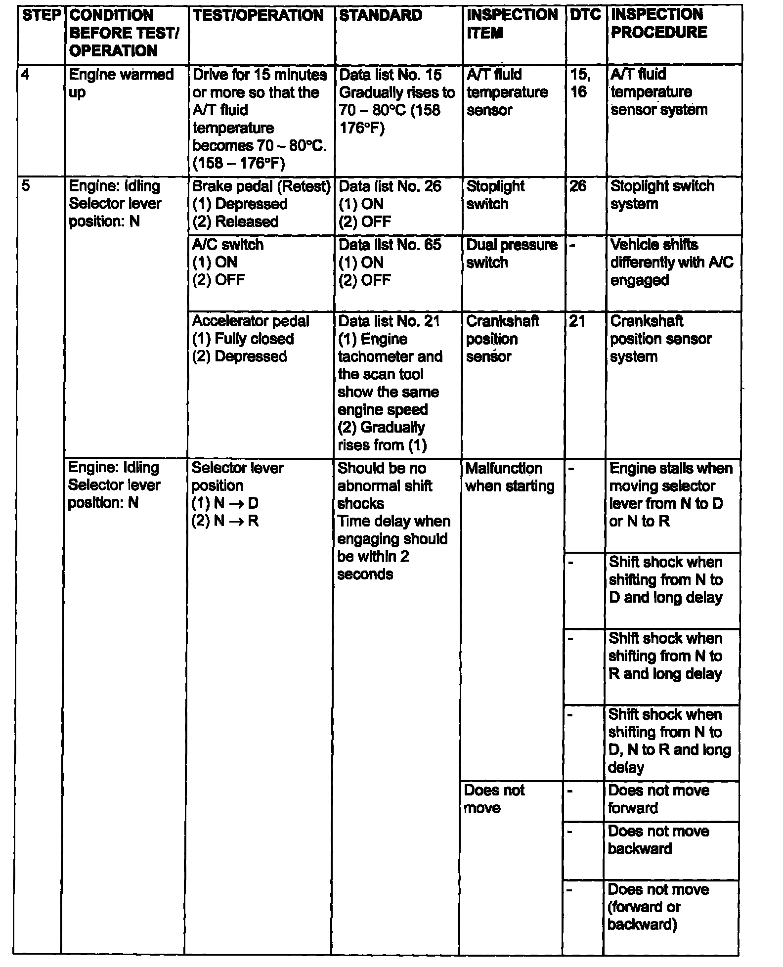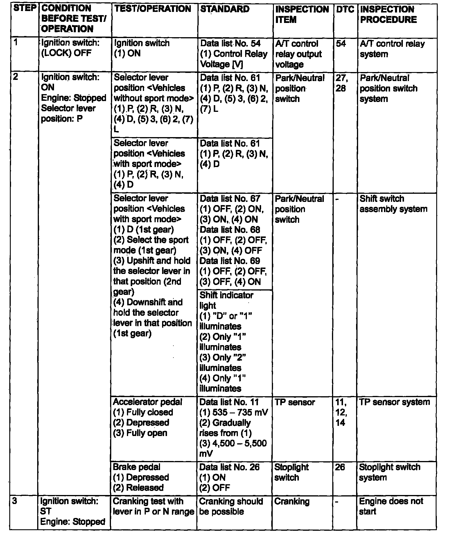 Non-Trouble Code Procedures