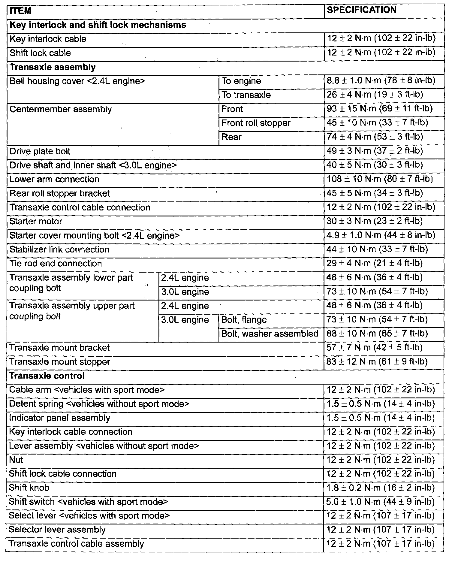 FASTENER TIGHTENING SPECIFICATIONS