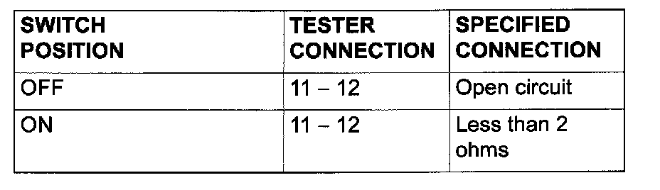 Defogger Switch Continuity Check: