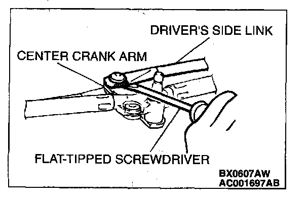 3. Use a flat-tipped screwdriver to disengage the driver's side link from the center crank arm.