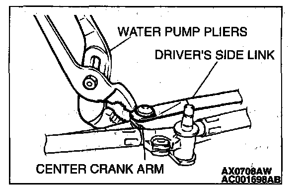 2. Use water pump pliers to engage securely the driver's side link with the center crank arm.