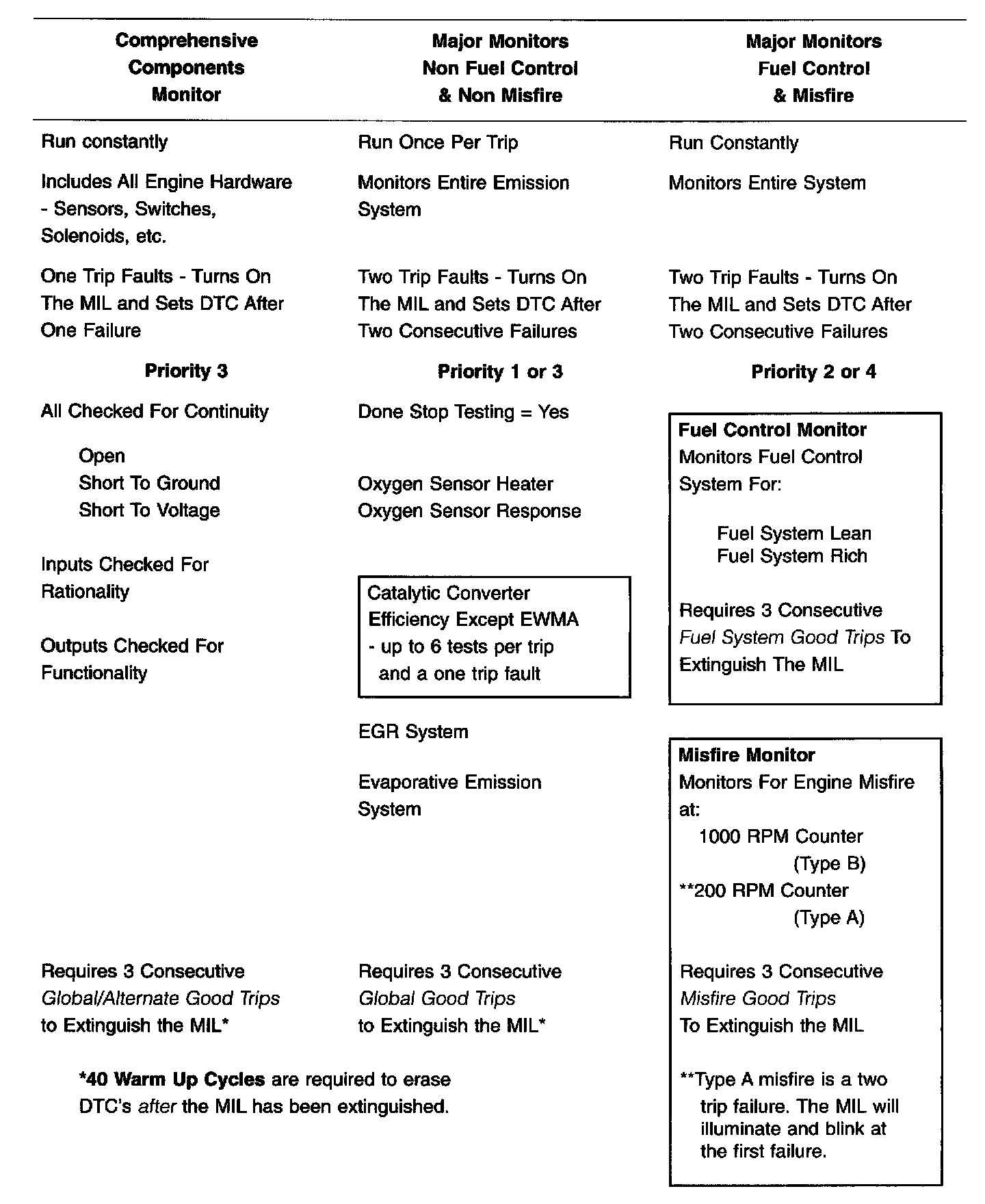 OBD II/Euro Stage III OBD Monitor Information: