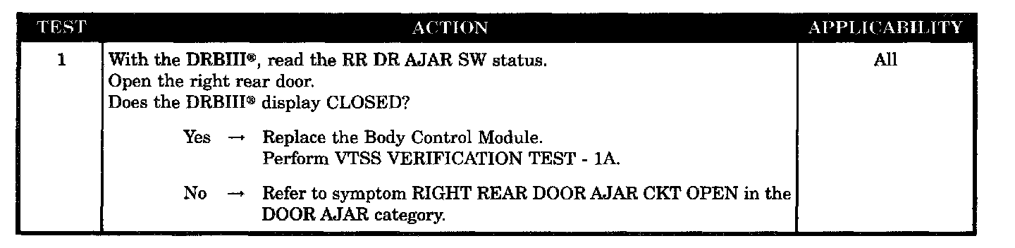 VTSS DOES NOT TRIP FROM RIGHT REAR DOOR